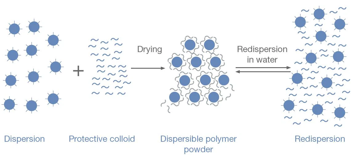 Redispersible Polymer Powder is a copolymer powder of ethylene/vinyl acetate, usually with polyvinyl alcohol (PVA) as a protective colloid. It is widely used in the construction industry due to its good bonding ability with the substrate, durability and flexibility.